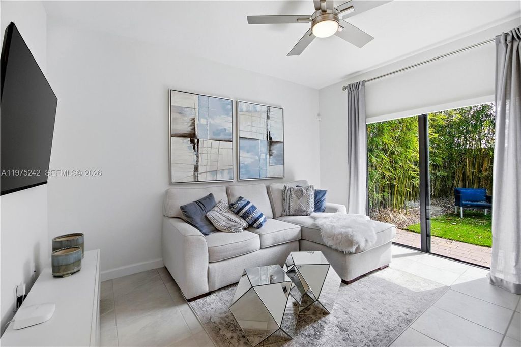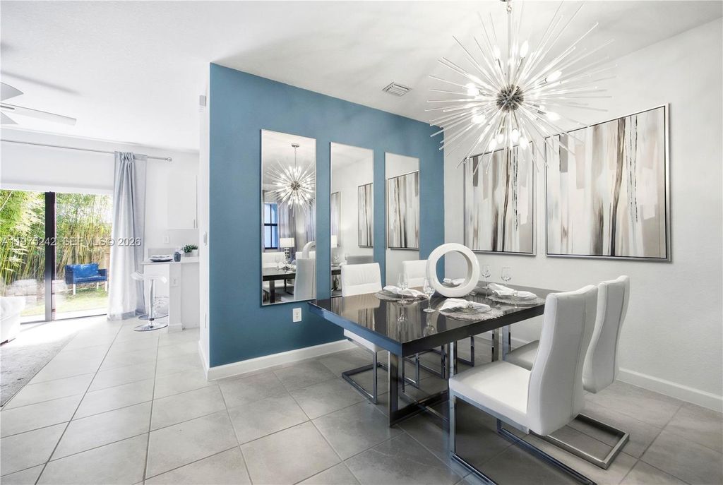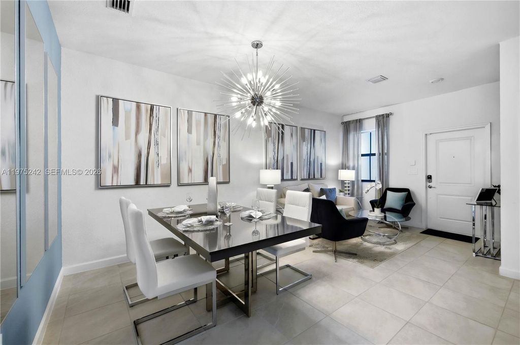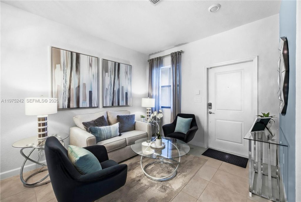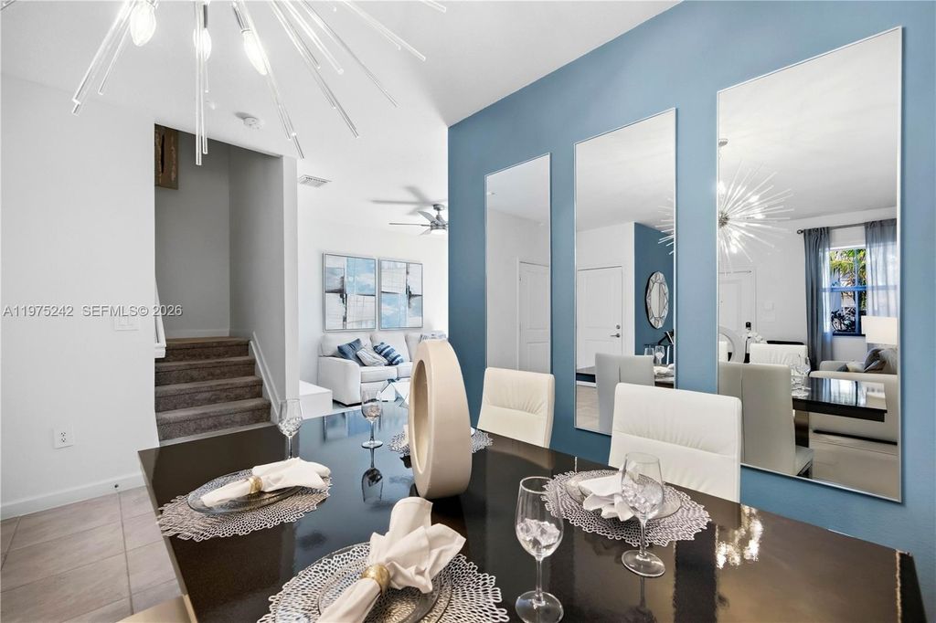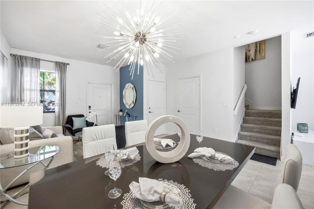 South Florida living at its best! This former builder model has never been lived in and is perfect as a starter home, second home, or investment. The 3BR/2.5BA layout offers modern comfort with a sleek kitchen featuring stainless steel appliances, a fenced rear yard, and a spacious primary bath with walk-in shower. Furniture not included but negotiable. This home also provides Impact Glass windows and doors. Enjoy affordable HOA fees and great amenities including a clubhouse, fitness center, pool, and tot lot. Square footage approximate.