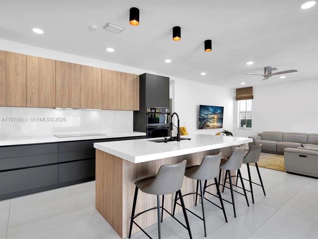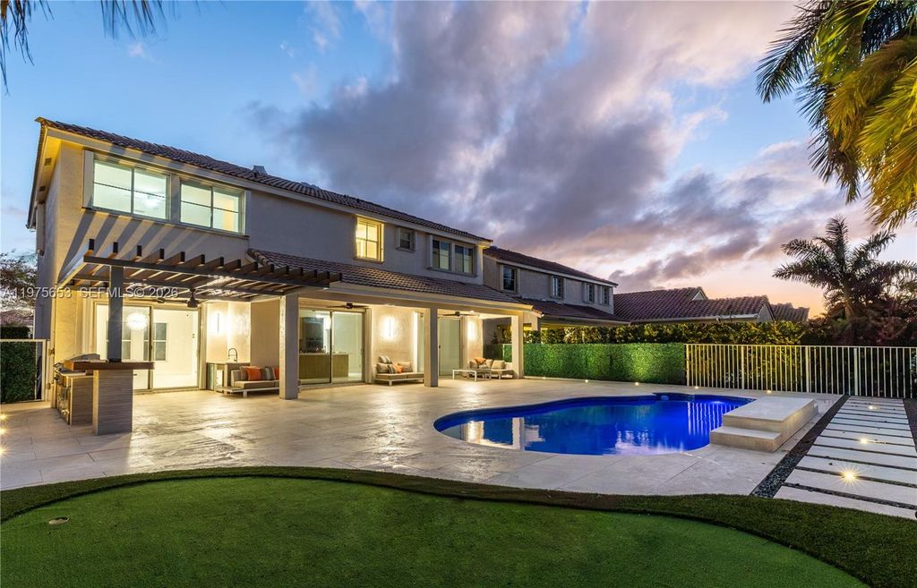Live on permanent vacation! This spectacular recently remodeled contemporary home features an amazing backyard with pool, lake view and outdoor kitchen, perfect for entertaining family and friends. Enjoy 5 bedrooms and 3 bathrooms. One of the bedrooms is located downstairs and perfect to be used as a guest room, playroom, office, den, or gym. Enjoy the modern luxury of this amazing home with porcelain on the first floor and laminate grey on the second floor. Beautiful kitchen Quartz countertop, modern and ultimate technology new appliances. New contemporary stair rails and wine cellar to display your most exclusive bottles. Conveniently located close to schools, shopping areas, restaurants, parks and more.