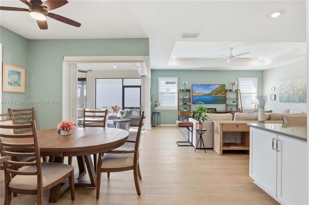 Must see home located in the rolling hills of Minneola...This home is loaded with builder and owner upgrades: upgraded configuration in the kitchen, primary bathroom, and laundry room, zero edge corner sliding doors, extended covered lanai, kitchen and bathroom cabinets, counter tops, kitchen backsplash, pre-wired for pendent lights, recessed lighting, and much more...Premium lot with no rear neighbors...The unique floor plan allows you the opportunity to convert the flex room to a 3rd bedroom and it has a 3 car tandem garage...This home has features the builder can no longer offer, irrigation system in the rear of the home and the AC compressor is on the side of the home...New construction homes the AC compressor is right outside the primary bedroom window...Community features: Manned gate, tennis & pickleball courts, community garden, clubhouse, zero entry pool with lap pool, fitness center & movement room, bar & grill with indoor/outdoor seating , dedicated lifestyle director, and so much more...The new clubhouse is scheduled to open early spring 2026...The community will be less than 1 mile from the new "Hills City Center" featuring the Crooked Can Brewery and Food Hall and it is less than 2 miles from the Florida Turnpike...