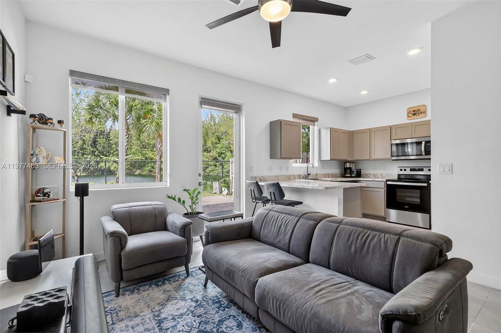 Welcome to this beautifully maintained 3-bedroom townhouse built in 2021, offering modern comfort and scenic lake views. This home feels almost new and features a bright open layout with upgraded window blinds throughout. Step outside to a private fenced backyard overlooking the lake, perfect for relaxing or enjoying outdoor gatherings. The property also offers a 1-car garage and two additional parking spaces directly in front of the unit. A washer and dryer are conveniently located on the second floor, making laundry easy and accessible. Conveniently located near major highways, University Dr, 441, and Hard Rock Stadium, this home combines modern living with everyday convenience.
