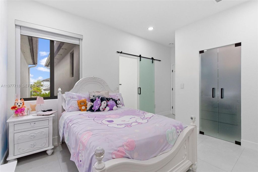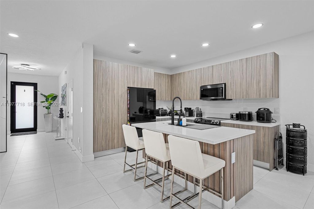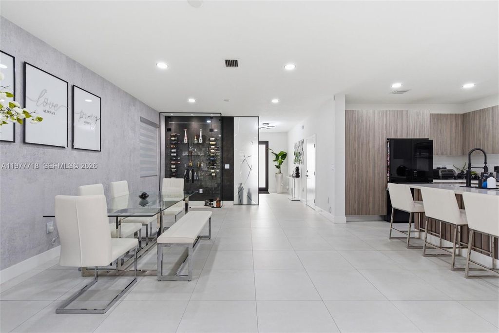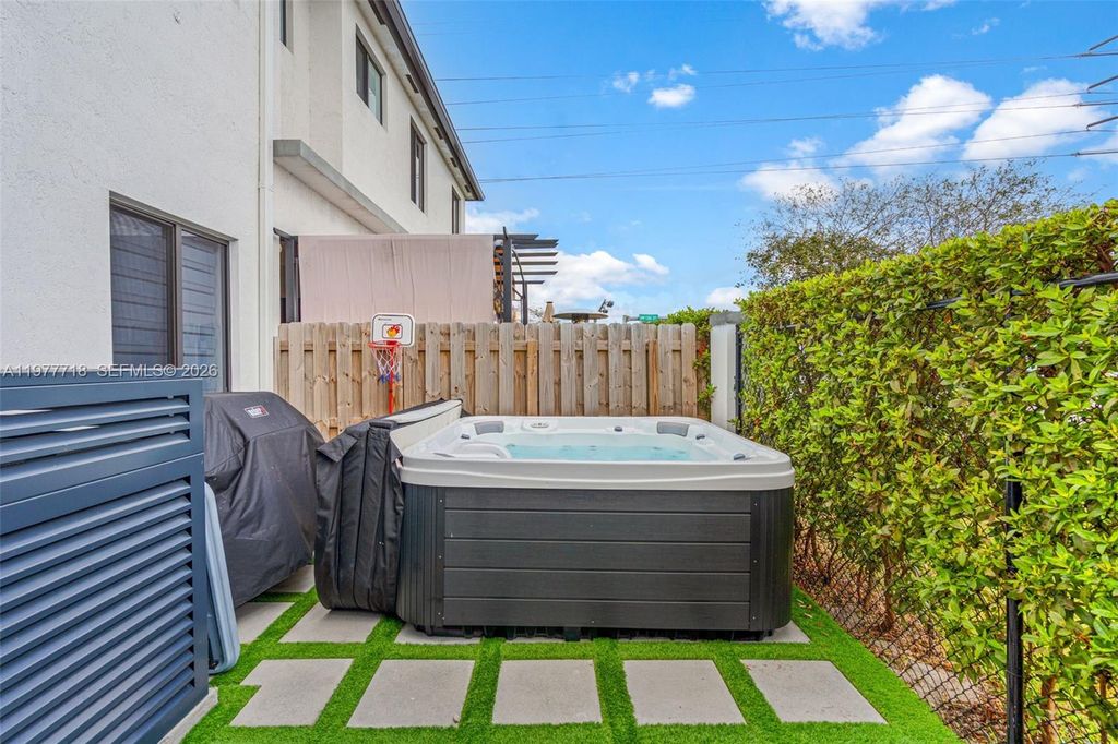 Stunning 4-bedroom, 3.5-bath single-family home built in 2023 featuring modern finishes and thoughtful upgrades throughout. This beautifully maintained home offers high ceilings, recessed lighting, impact windows, accent walls, electronic curtains, smart home features, and upgraded light fixtures, creating a bright and sophisticated living space. The thoughtfully designed interior includes custom walk-in and built-in closets, along with fun themed bedrooms for kids, adding both personality and functionality. The upgraded kitchen is perfect for entertaining, featuring a wine cellar and wine cooler. Step outside to your covered patio with a private jacuzzi, creating the perfect outdoor space to relax or entertain guests. Additional highlights include a 1-car garage with EV charging station, offering convenience for electric vehicle owners. Located in a desirable community with LOW HOA, this home is just minutes from the Turnpike, shopping, dining, and Zoo Miami. A rare opportunity to own a newer construction home in a prime location.