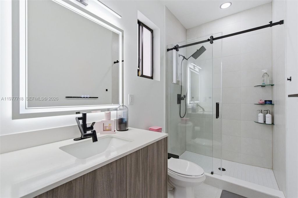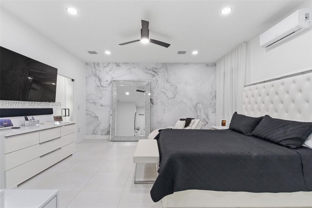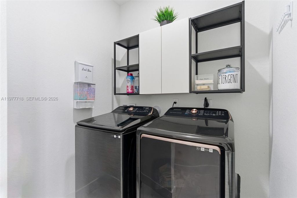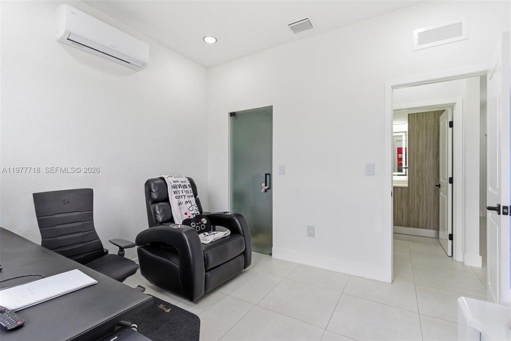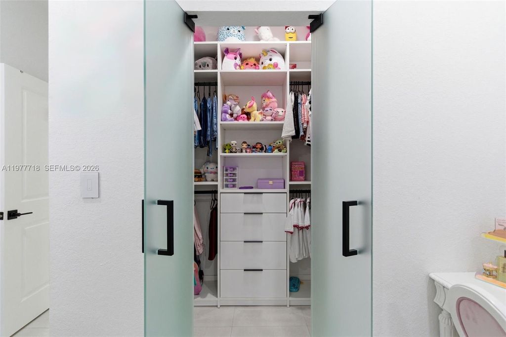 Stunning 4-bedroom, 3.5-bath single-family home built in 2023 featuring modern finishes and thoughtful upgrades throughout. This beautifully maintained home offers high ceilings, recessed lighting, impact windows, accent walls, electronic curtains, smart home features, and upgraded light fixtures, creating a bright and sophisticated living space. The thoughtfully designed interior includes custom walk-in and built-in closets, along with fun themed bedrooms for kids, adding both personality and functionality. The upgraded kitchen is perfect for entertaining, featuring a wine cellar and wine cooler. Step outside to your covered patio with a private jacuzzi, creating the perfect outdoor space to relax or entertain guests. Additional highlights include a 1-car garage with EV charging station, offering convenience for electric vehicle owners. Located in a desirable community with LOW HOA, this home is just minutes from the Turnpike, shopping, dining, and Zoo Miami. A rare opportunity to own a newer construction home in a prime location.