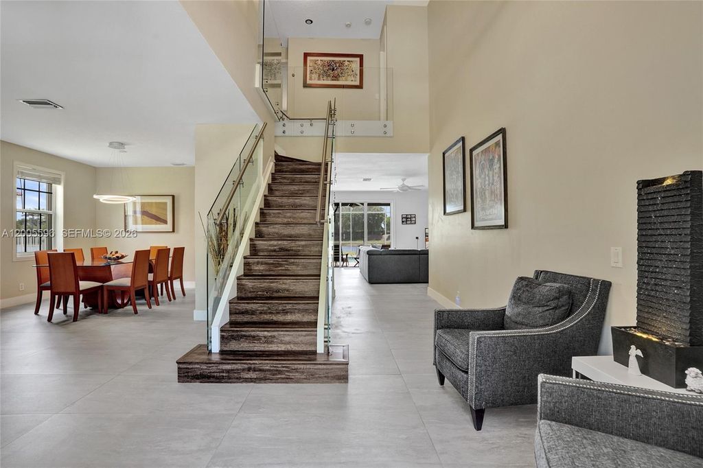 Welcome to this cozy 5-bedroom, 4-bathroom residence located in the highly sought-after community of The Ridges in Weston. Perfectly positioned on a premium lot, this home offers unobstructed lake views with no neighbors behind, creating a peaceful and private setting. Step inside to discover a spacious and thoughtfully designed floor plan, featuring a newer roof, porcelain flooring throughout the first level and engineered wood floors upstairs. The updated kitchen is a true centerpiece, complete with granite countertops and ample cabinetry, ideal for both everyday living and entertaining. Enjoy breathtaking lake views from nearly every area on the first floor, filling the home with natural light and serene water vistas. The first floor also includes a full bedroom and bathroom, offering flexibility as a guest suite, home office, or playroom. Upstairs, you'll find generously sized bedrooms and beautifully renovated bathrooms designed with contemporary finishes and comfort in mind. Step outside to your private backyard oasis, featuring a sparkling pool with a screen enclosure"”perfect for year-round enjoyment while taking in the tranquil lake backdrop. Located in a gated community known for its lush surroundings and exceptional amenities, The Ridges offers residents access to recreational facilities surrounded by nature. Conveniently situated near A-rated schools, shopping, dining, and major highways, this home combines, comfort and convenience in one exceptional package.
