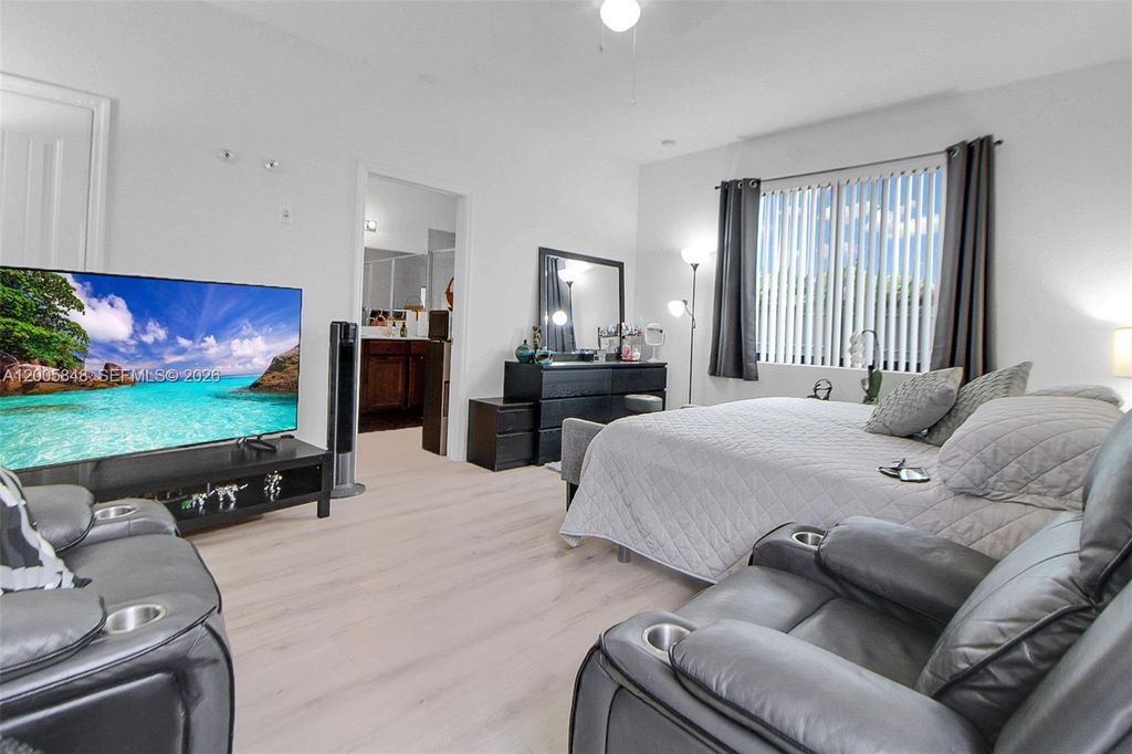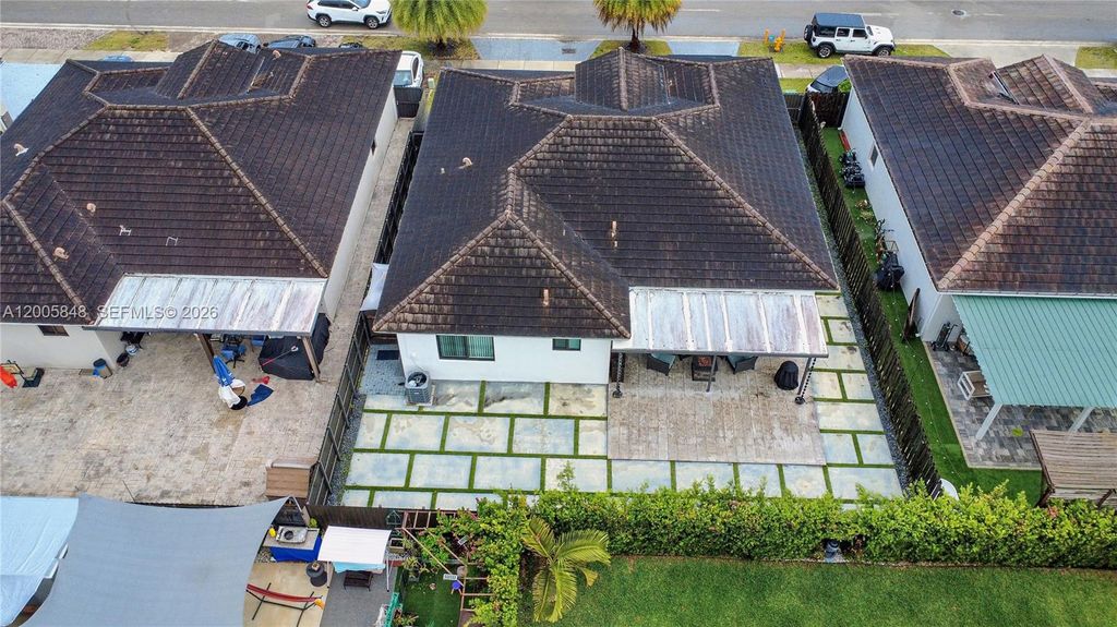 Beautifully updated home with commercial-grade hurricane impact windows and doors for maximum protection and efficiency. The primary bedroom has been converted into a private efficiency, offering excellent flexibility for rental income, guests, or extended family, while still maintaining interior access to the main home. A den/office adds valuable extra space for work or everyday living. The new kitchen features updated appliances and a quartz waterfall island, creating a modern and functional centerpiece. Step outside to a sleek, low-maintenance concrete patio, perfect for entertaining. Additional highlights include a two-car garage and a new A/C system (interior and exterior) under warranty. No HOA and not located in a flood zone, providing added savings and peace of mind. A great opportunity for homeowners or investors looking for flexibility and value in today's market.