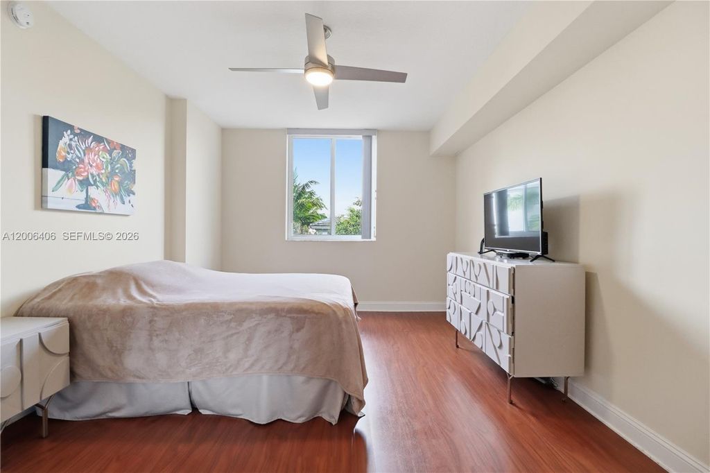 Welcome to this charming, beautifully updated 2-bedroom, 2-bathroom apartment featuring brand-new blinds, a new refrigerator, and a newer in-unit washer and dryer. The home showcases updated laminate flooring in both bedrooms and additional upgraded flooring throughout. Enjoy enhanced comfort with two new ceiling fans and a sun-filled living space, A stylish kitchen with newly installed backsplash details. The open balcony is perfect for relaxing, conveniently located near the shopping center, restaurant, and the mall. Furniture is negotiable/optional, offering a move-in-ready opportunity.
