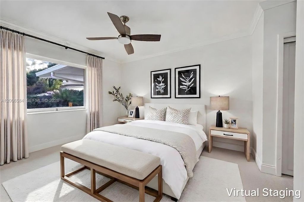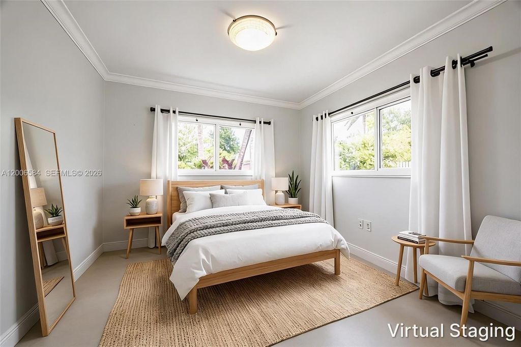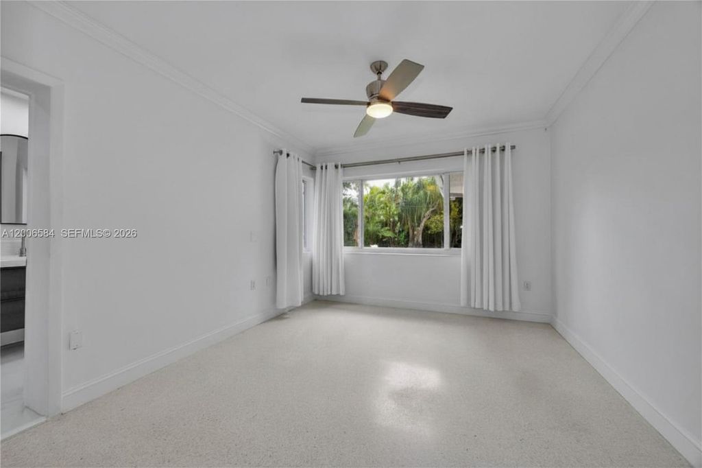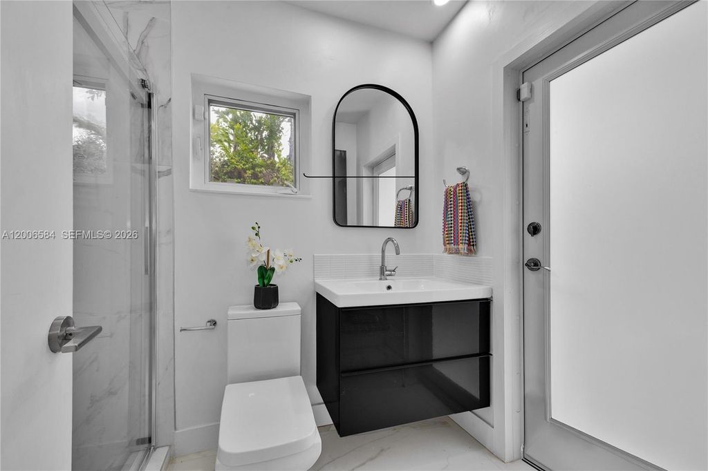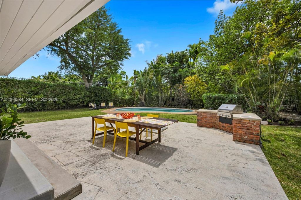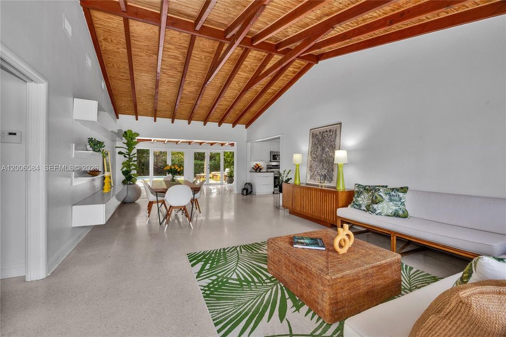 The moment you walk through the door, this home surprises. The kind of surprise that quietly becomes a feeling you recognize as home. Above you, a soaring vaulted wood ceiling fills the room with warmth and unexpected volume. Underfoot, polished Terrazzo. Straight ahead, a lush green backyard and sparkling pool. First-time visitors consistently say and feel the same thing ~ WOW! The great room unfolds across three distinct areas: living, dining, and family. All open, all connected and anchored by wall-to-wall glass doors that open to the garden. The pool beckons. Beyond it, a grove of mature tropical trees wraps the back of the property in shade and seclusion "” the kind of privacy that takes decades to grow. Natural light moves through the house all day, and that lush green backyard and lovely pool is always in view. The open kitchen w/ modern, flat panel cabinets and black granite complements the mid-century aesthetic. Gorgeous renovated baths w/glass enclosed showers, contemporary dimensional wall tile and mounted vanities elevate the space. A quiet, bright room with its own high-volume wood beam ceiling is equally suited as a third bedroom or private office. Impact windows, 3 AC Zones. Set on a 10,950 SF lot in the vibrant Biltmore Heights neighborhood in South Miami where neighbors organize art walks, holiday cookie crawls, and potlucks. This is a community where people walk, bring along their dogs and rarely want to leave. Once you're here, you'll feel the same. Welcome!