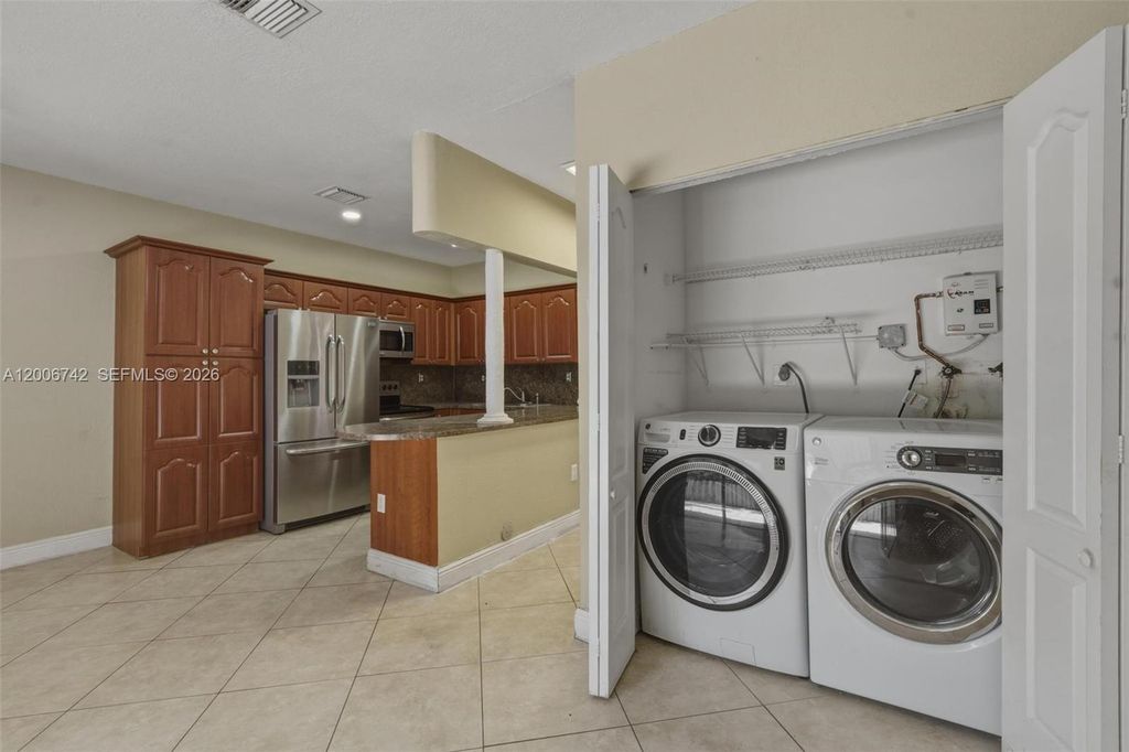 Located in the heart of the sought-after Paseos community, this townhouse offers a functional layout in one of South Florida's most consistently desirable neighborhoods. The interior features a practical combination of tile and laminate flooring throughout, complemented by a kitchen equipped with stainless steel appliances. Key mechanical updates provide a solid foundation for the home, including a central A/C system installed in 2021 and a tankless water heater for energy efficiency. For peace of mind and storm protection, the property is fully equipped with accordion shutters. The Paseos community is known for its suburban charm and low HOA fees, which include access to a community pool and well-maintained common areas. The property is ideally situated near the best of Miami Lakes, including the expansive Miami Lakes Optimist Park, top-rated K-8 schools, and the popular shops, theaters, and restaurants along Main Street. With its strategic location, residents enjoy quick access to the Palmetto Expressway and I-75, making for an efficient commute to both Miami and Broward County. This property offers a chance to secure a home in a town famous for its park-like atmosphere and tree-lined streets. Sold as-is.