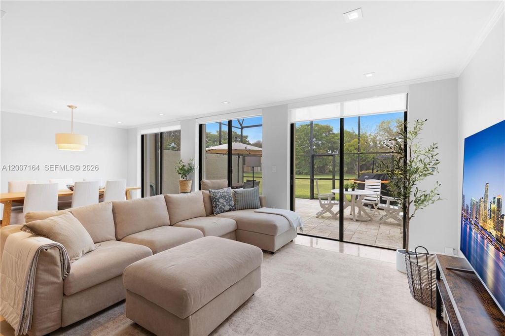 Beautiful corner townhouse located in the highly desirable, guard-gated Golf community of Costa del Sol in Doral. This spacious residence offers 3 bed, 2 1/2 bath, with approximately 1,712 sq. ft. of living space with a bright and open layout. The home features high ceilings, abundant natural light, modern upgrades, California closets, LED lighting, and a brand-new A/C unit. The kitchen is equipped with stainless steel appliances, and the property includes a one car garage. Enjoy a large screened-in patio overlooking the golf course, perfect for relaxing or entertaining. One of the standout features is the convenience of 3 parking spaces directly in front of the property. Amenities include a Clubhouse, pool onsite restaurant & more, Close to highways, shopping malls, Airport.
