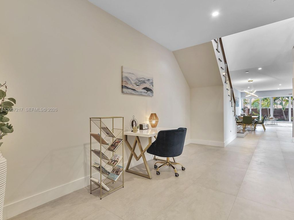 Contemporary 2018-built townhouse in the desirable Coral Ridge neighborhood. This spacious 4-bed, 4.5-bath home boasts an open layout with 9'8" ceilings, Bosch appliances with induction cooktop, quartz countertops, and European cabinetry. Floor-to-ceiling glass doors seamlessly blend indoor and outdoor living, leading to a heated pool. One en-suite bedroom is conveniently located downstairs, while upstairs features 3 en-suite bedrooms"”two with private balconies"”and a versatile den. The primary suite includes dual walk-in closets, dual sinks, a soaking tub, and motorized shades. Additional features include a two-car garage with electric car charger, Nest system, security cameras, no HOA, and an unbeatable location near the beach and shopping. A prime investment opportunity!
