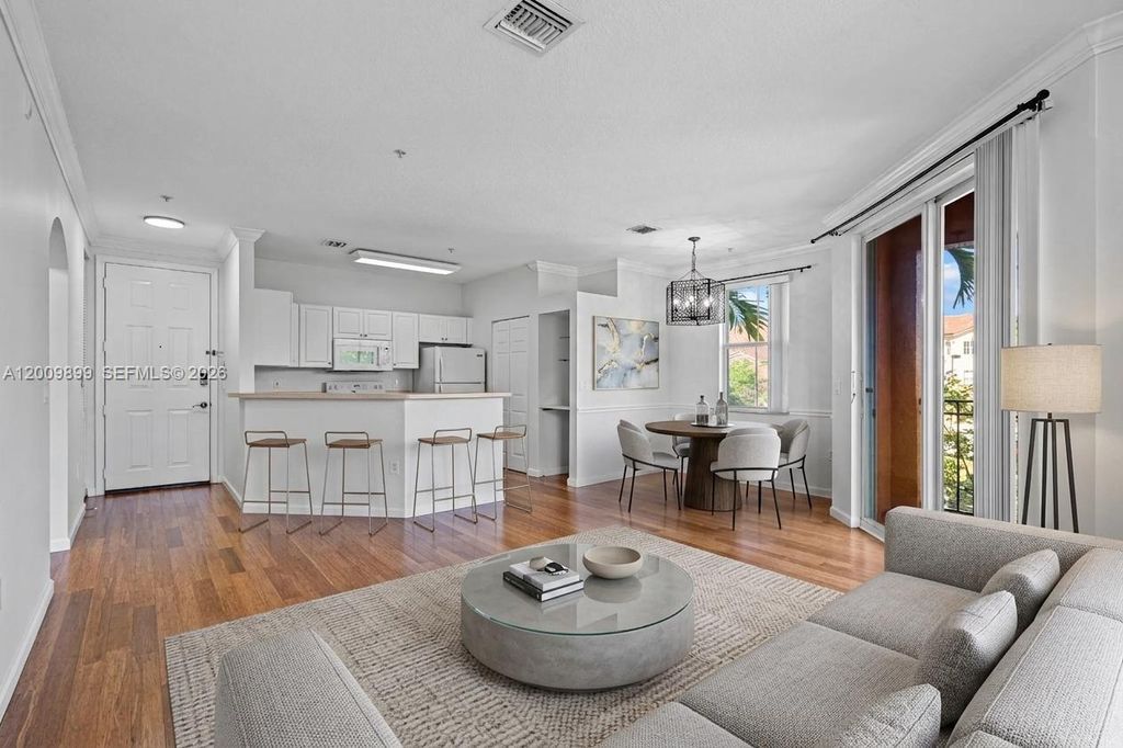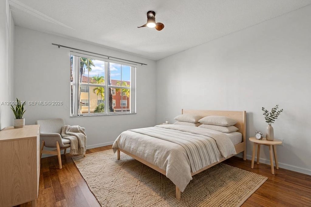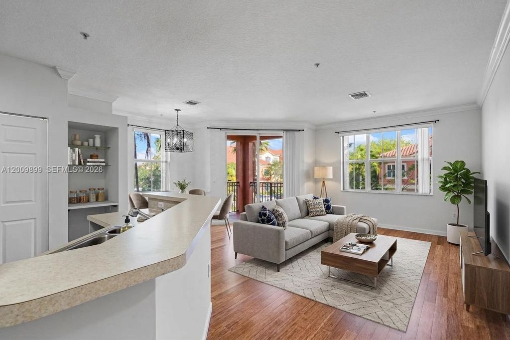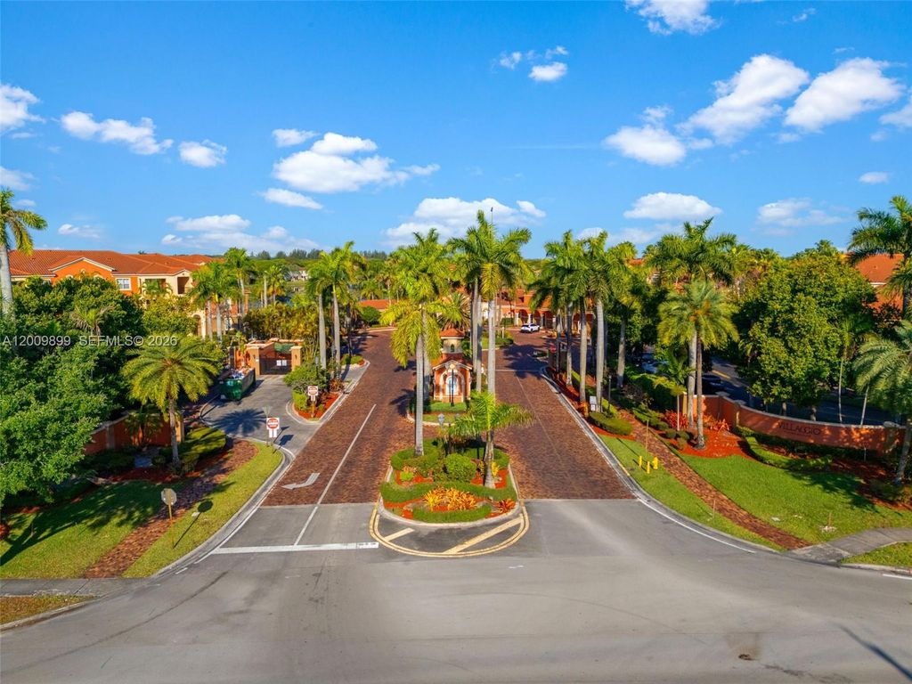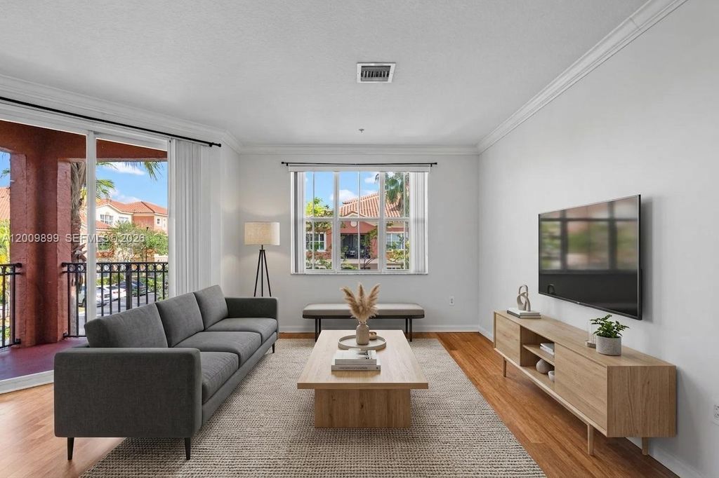 Experience modern comfort in this beautifully updated 1-bedroom, 1-bathroom condo located in the heart of Miramar. Situated on the second floor, this "Catania" model features high-volume ceilings and rich bamboo hardwood flooring throughout the living areas. The sleek kitchen is equipped with updated appliances, including a 2024 range and microwave, and a 2024 Whirlpool washing machine. Peace of mind is guaranteed with full-impact windows and doors, a 2023 roof, and an integrated alarm system. Enjoy a private, screened-in balcony overlooking lush garden views. The gated El-Ad Villaggio community offers resort-style amenities, including a pool, gym, indoor basketball court, and clubhouse. Maintenance includes water, trash, and exterior insurance. Move-in ready and perfectly located!